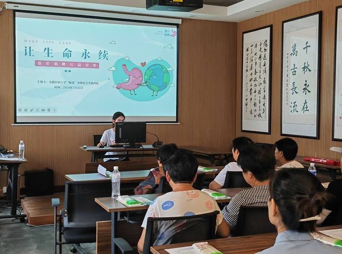 “鲸落”暑期社会实践团前往安徽省淮北市濉溪县开展暑期社会实践活动。同学们走进当地乡村普及器官捐献知识、致敬无语良师,深入邻里服务站、开展健康咨询,参观淮海战役纪念馆,传承弘扬爱国主义精神。致敬无语良师,助力生命传递。围绕器官捐献主题,实践团队成员通过问卷调查、理论宣讲等方式,为当地居民科普遗体捐献知识,并邀请他们一起致敬无语良师,感受无私奉献精神。宣讲活动结束后,当地居民表示:“以前只听说过器官捐献这个名词,从来没具体了解过,这次通过宣讲,我们知道了具体流程和它的意义,相信越来越多的人会支持这项事业。”深入邻里服务站,开展健康咨询。在指导老师的带领下,实践队成员们在濉溪县红心党群邻里服务站开展了一场以“健康义诊社区行,真情服务暖人心”为主题的健康咨询活动。活动中,实践队员结合自身专业知识,为当地居民测量血压、讲解常见疾病知识和用药注意事项等,进一步提升村民健康意识,普及健康生活方式。参观淮海战役纪念馆,传承弘扬爱国主义精神。实践队员们还一同前往淮海战役纪念馆参观学习。在讲解员的带领下,大家一同回顾了淮海战役的历史背景、战役经过以及重大意义。同学们被烈士们为民族独