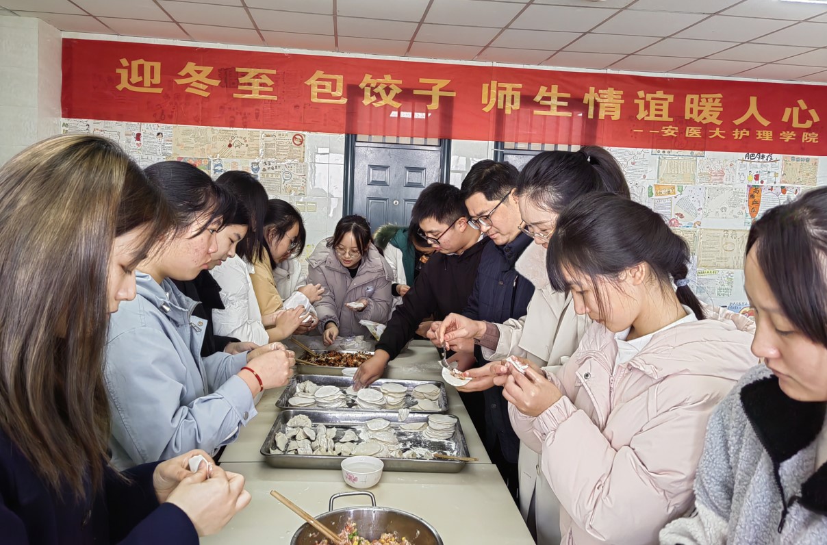 师生同乐,情暖冬至。冬至当天,该院举办“迎冬至、包饺子,师生情谊暖人心”活动,师生代表共50余人齐聚一堂,包饺子、话家长,气氛融洽,活动弘扬了传统文化,增进了师生交流,让远离家乡的同学感受到集体的温暖和自慰色情 的关怀。