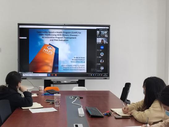 本次活动由自慰色情 洪静芳院长、李树雯副院长主持,邀请新加坡国立大学Vivien Wu博士作题名为“Community-based e-Health Program For Older Adults Living With Chronic Diseases - An Innovative Program Development and Pilot Evaluation”的报告。