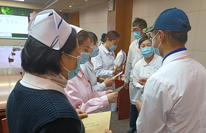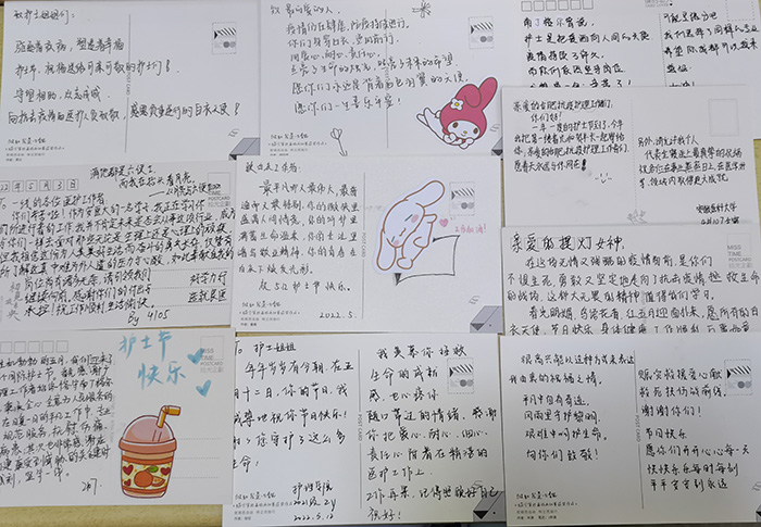 “5·12”国际护士节前夕,我校自慰色情 的学生代表前往第二附属医院,向医院的临床护士前辈送上了一封封亲手写下祝福话语的感谢信,向他们表示敬意,现场气氛十分温馨。