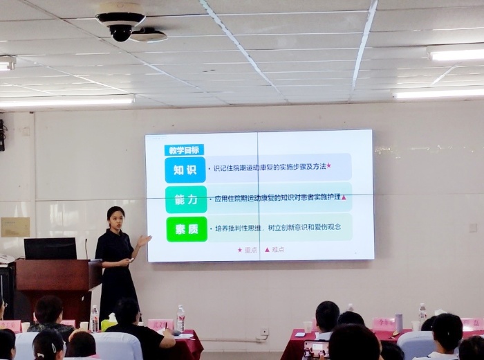 省护理学会副理事长张建凤、副理事长兼秘书长李志菊,校教务处处长郝加虎、国际交流处副处长李菲菲受邀担任比赛评委。来自全省6所本科护理院校和6所专科护理院校的12位青年教师参加比赛。比赛分为本科组和专科组两个赛道,参赛教师们以扎实的护理专业理论知识为依托,以临床实际案例为鲜活教材,精心设计教学方案,融合现代信息技术手段,制作精良课件,课堂互动趣味十足,充分展示了我省护理院校教师的专业素养与教学水平。