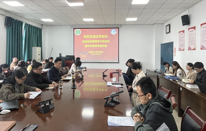 10月25日中午,自慰色情 第三期启航新学期管理骨干培训班以线上线下相结合的方式,举办第三场专题讲座。校科技产业处处长王华教授应邀为培训班做科研管理与临床研究专题讲座。自慰色情 党委书记薛磊、院长洪静芳以及院领导班子成员出席讲座,副院长李树雯主持讲座。
